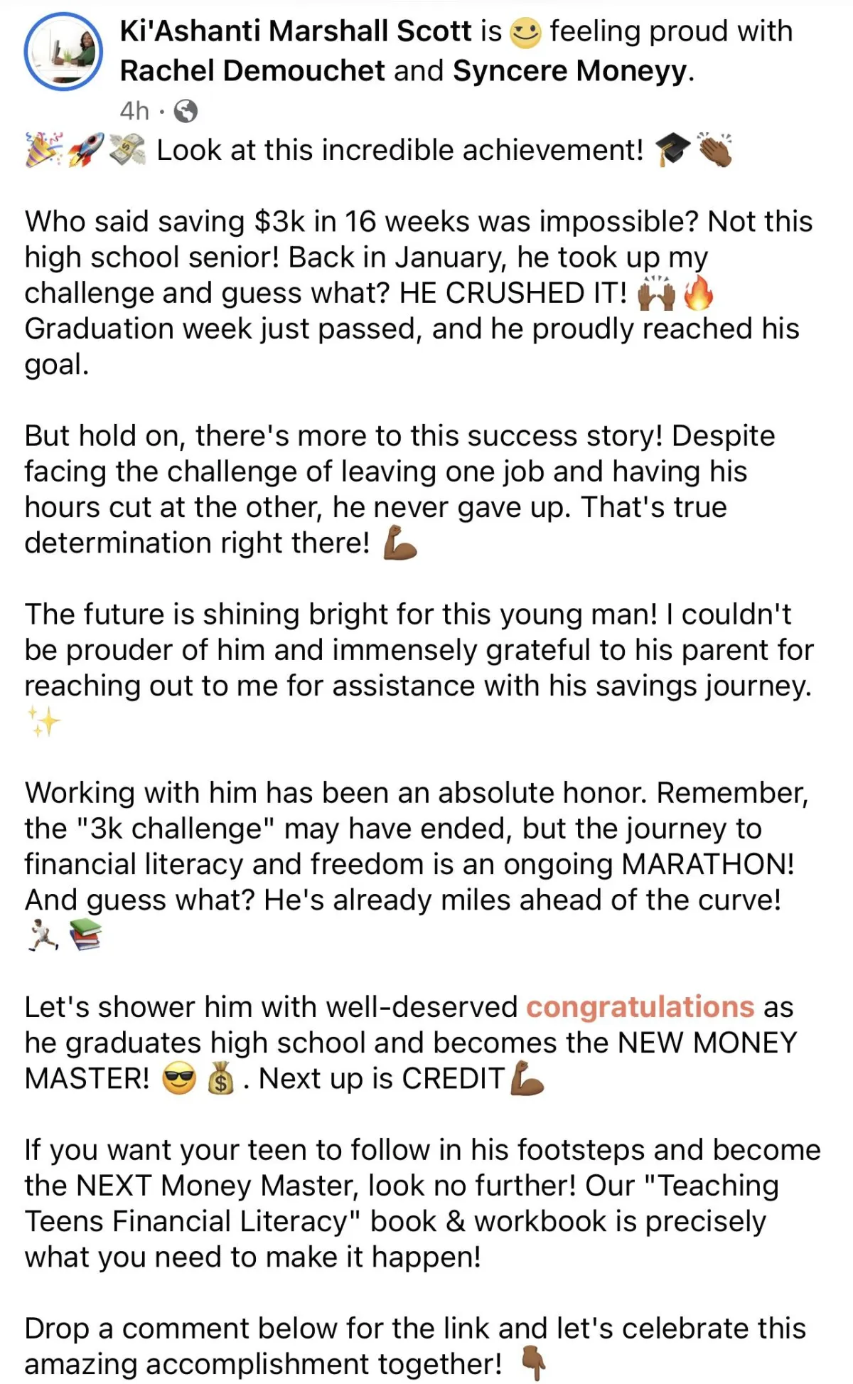 ENROLL NOW to join forces with Ki'Ashanti, The Money Master, and provide your Grad with the financial HEADSTART they truly deserve!
